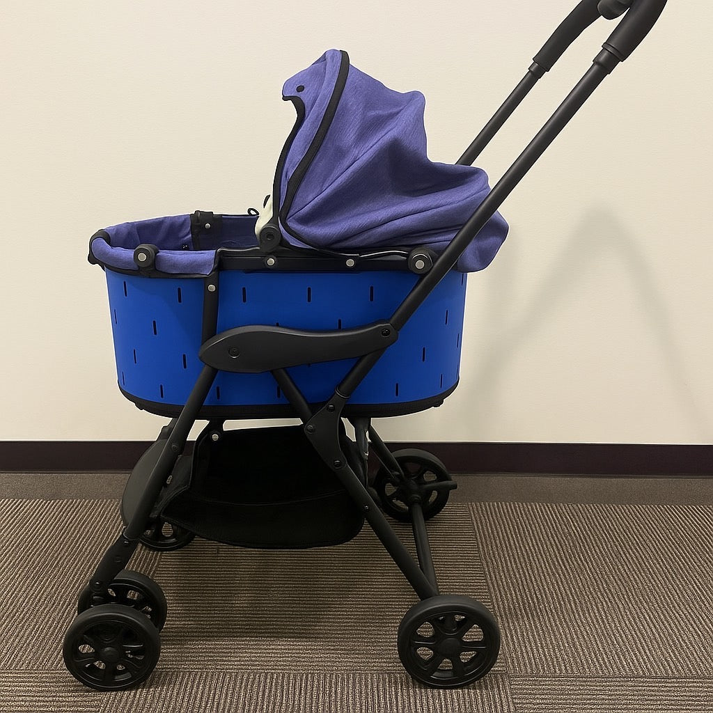 2025年夏だけの限定カラー、ビビッドブルーのDECODECOカバーが登場。清涼感のあるカラーリングで、暑い季節のお散歩やお出かけシーンにぴったり。ペットカートを明るく爽やかに彩ります。